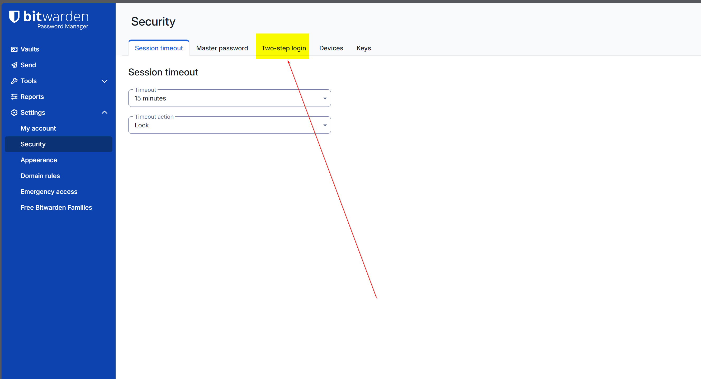 From your account settings, click on 'Security' located under 'Settings' in the left menu bar.